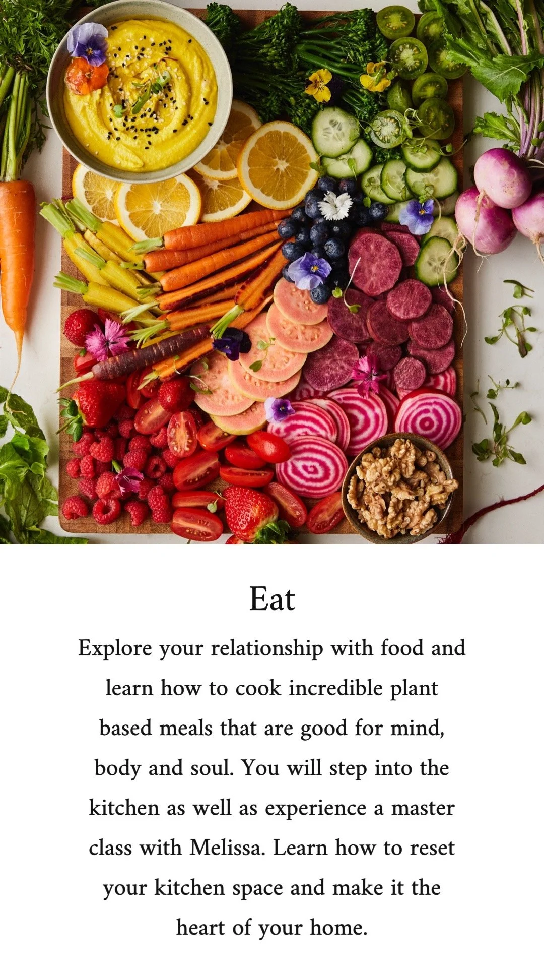 “About Melissa: Melissa seamlessly integrates the multiple aspects of health and wellbeing, and I appreciated that she could hold the space for us to pause and become mindful of how our daily practices, from eating to self-talk, influence our lives.